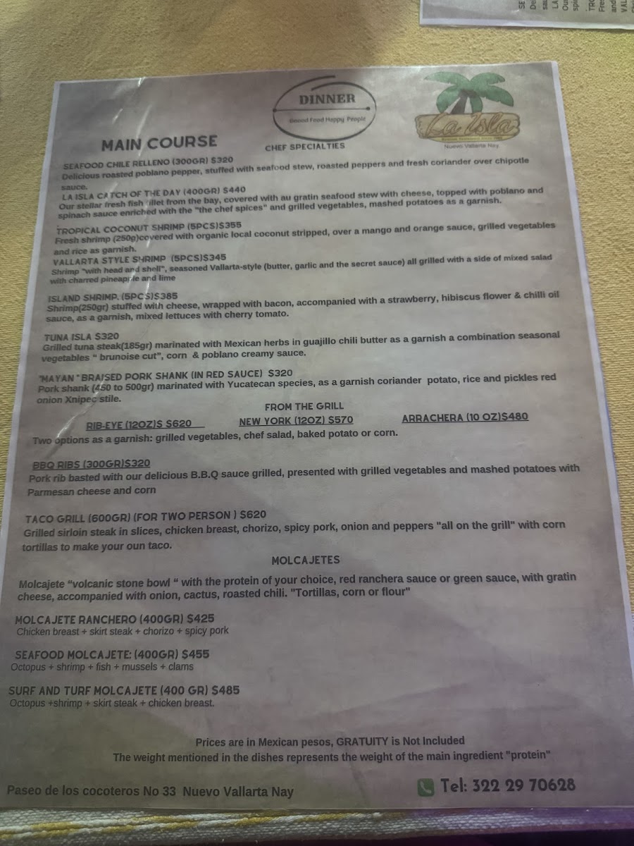 Welcome to La Isla Restaurant Bar, a culinary haven nestled in Nuevo Vallarta, Mexico. This charming eatery is celebrated for its authentic local cuisine, offering a delightful escape from the typical tourist traps. The menu showcases mouthwatering dishes, including fresh fish tacos, hearty burritos, and vibrant guacamole alongside traditional salsas like pico de gallo, all made with locally sourced ingredients.